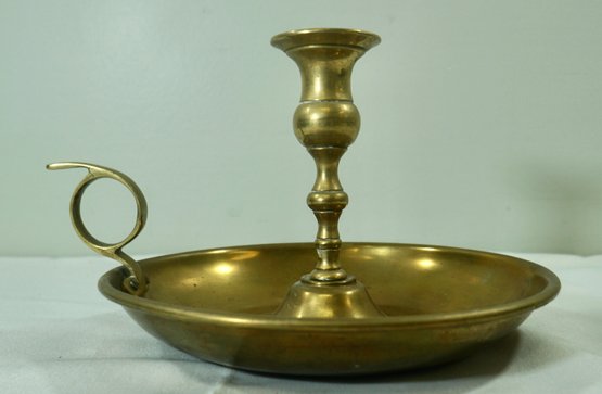 18- Large 19th Century Brass Chamber Stick - 9" Plate