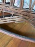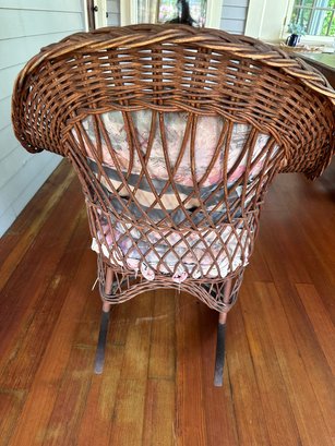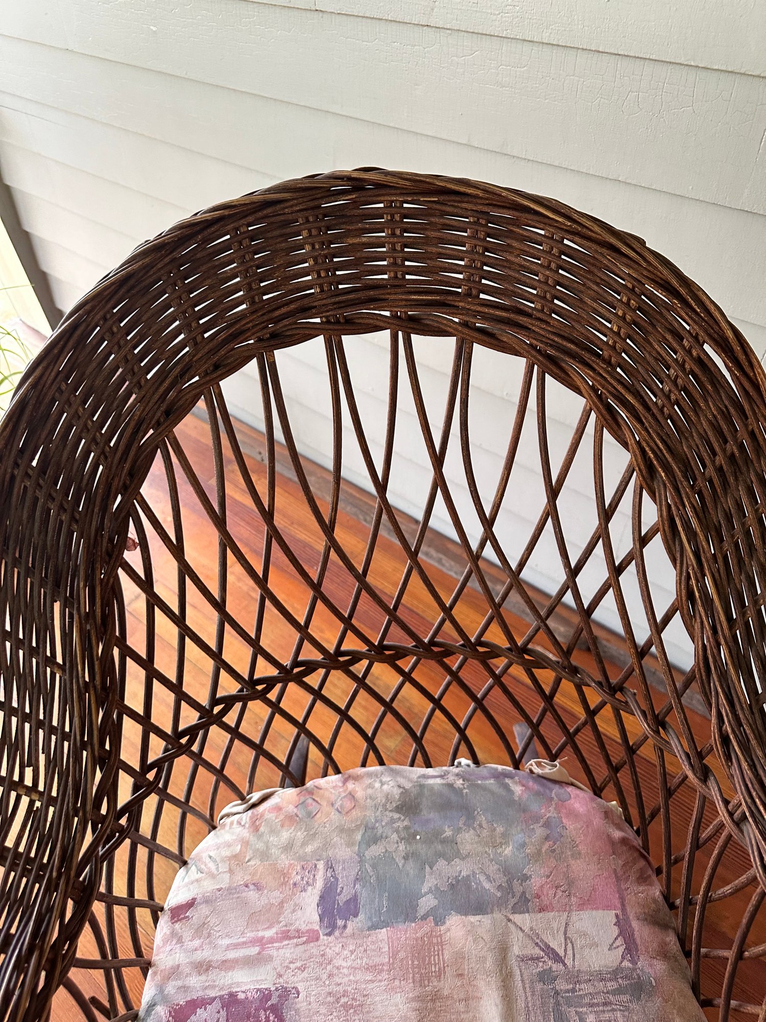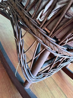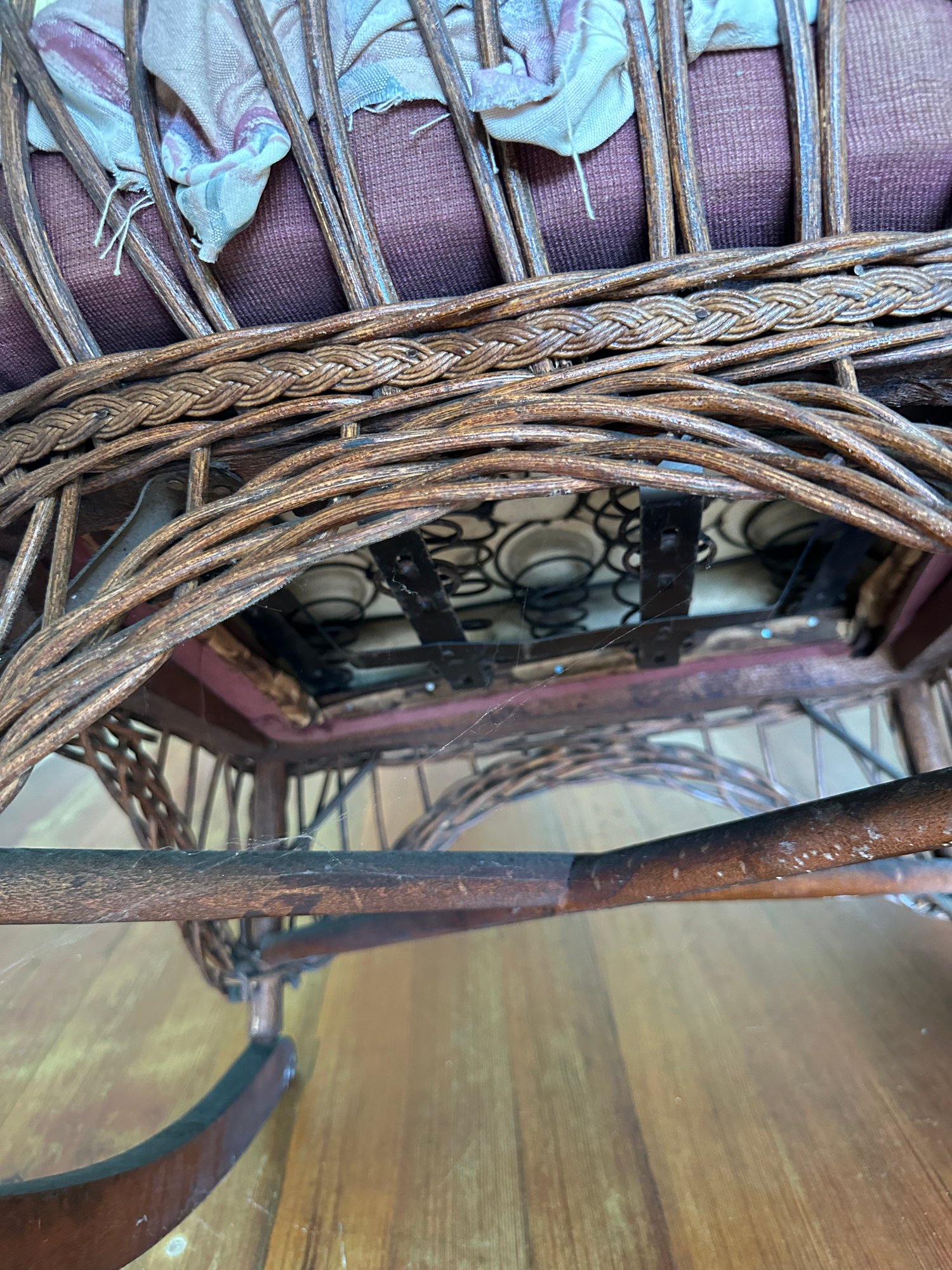 some broken wicker and exposed springs under seat
