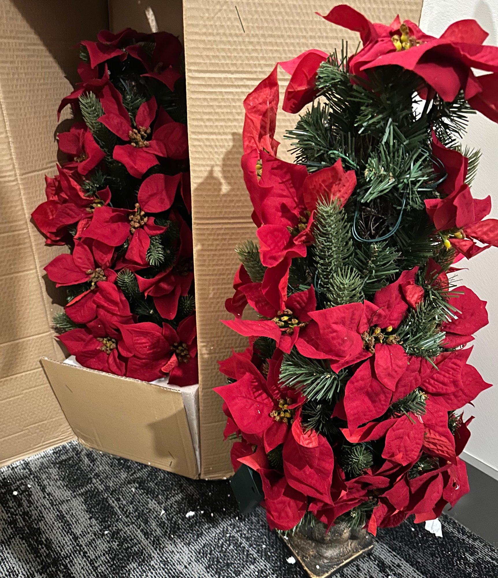 2 Matching Faux Poinsettia Trees 29 Inches Tall - X6