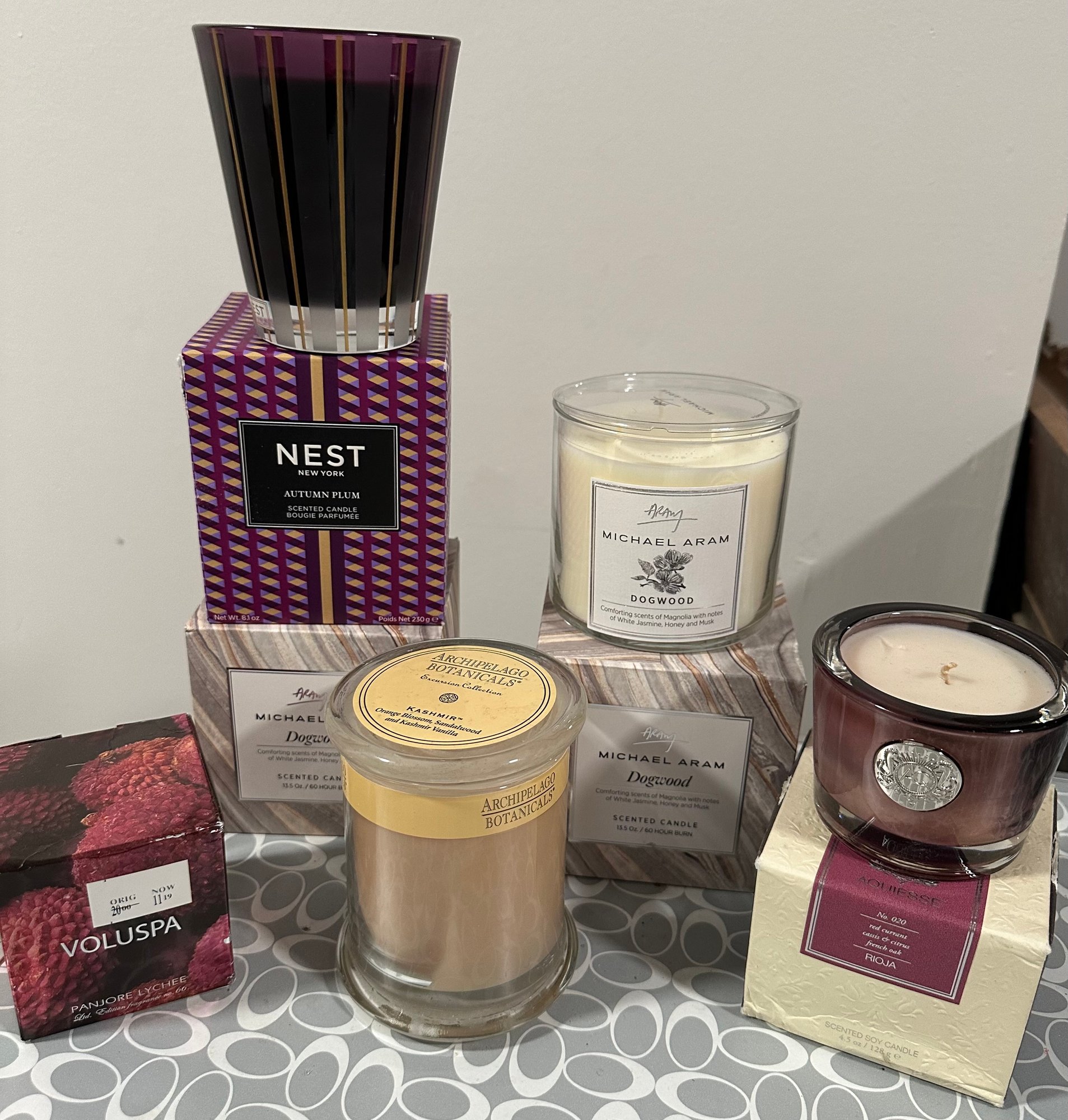 2 Michael Aram Dogwood Candles, Nest Candle, Etc. 6 In Total - D3