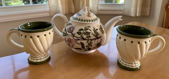 2 Quart Botanic Garden Portmerion Teapot With Two Coordinating Ceramic Mugs - K20