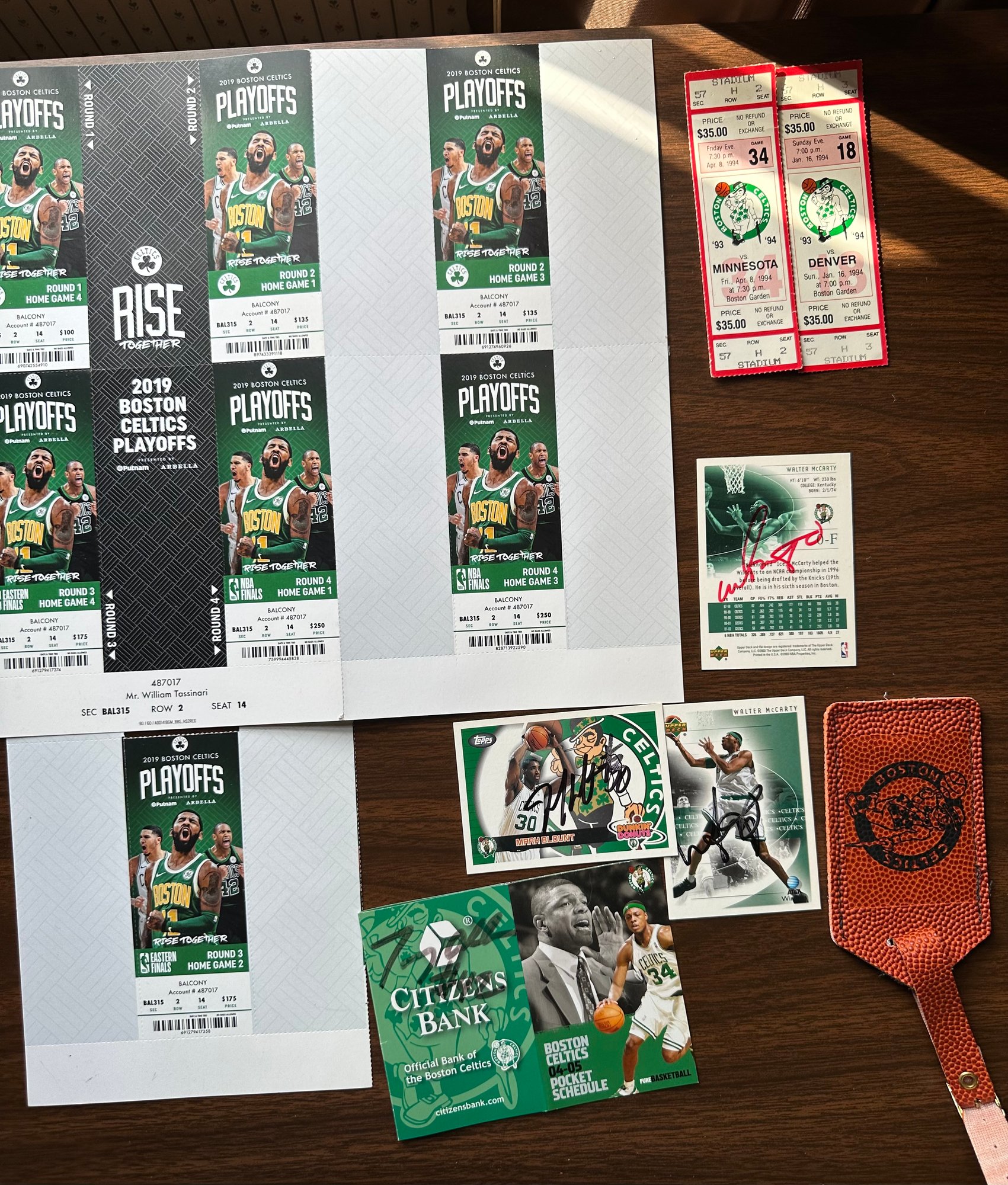 2019 Boston Celtics Playoff Tix, Walter Mccarthy, Mark Blunt & Tony Allen Signed Cards - D124