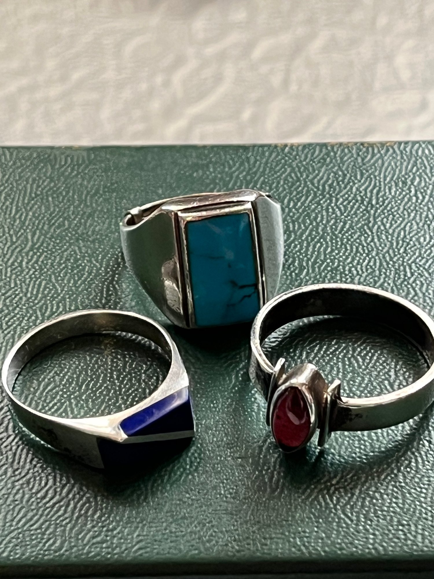 3 Rings, Two Sterling Silver With Semi Precious Stones-k114