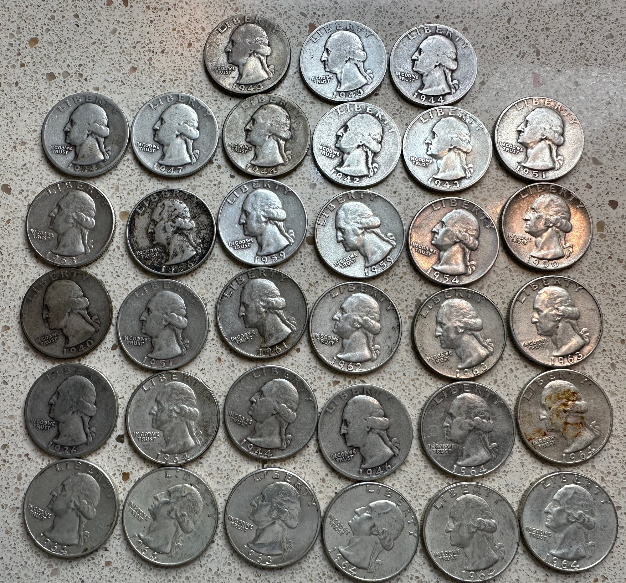 33 (Thirty Three) Washington Silver Quarters Various Years 1934-1964 - 24