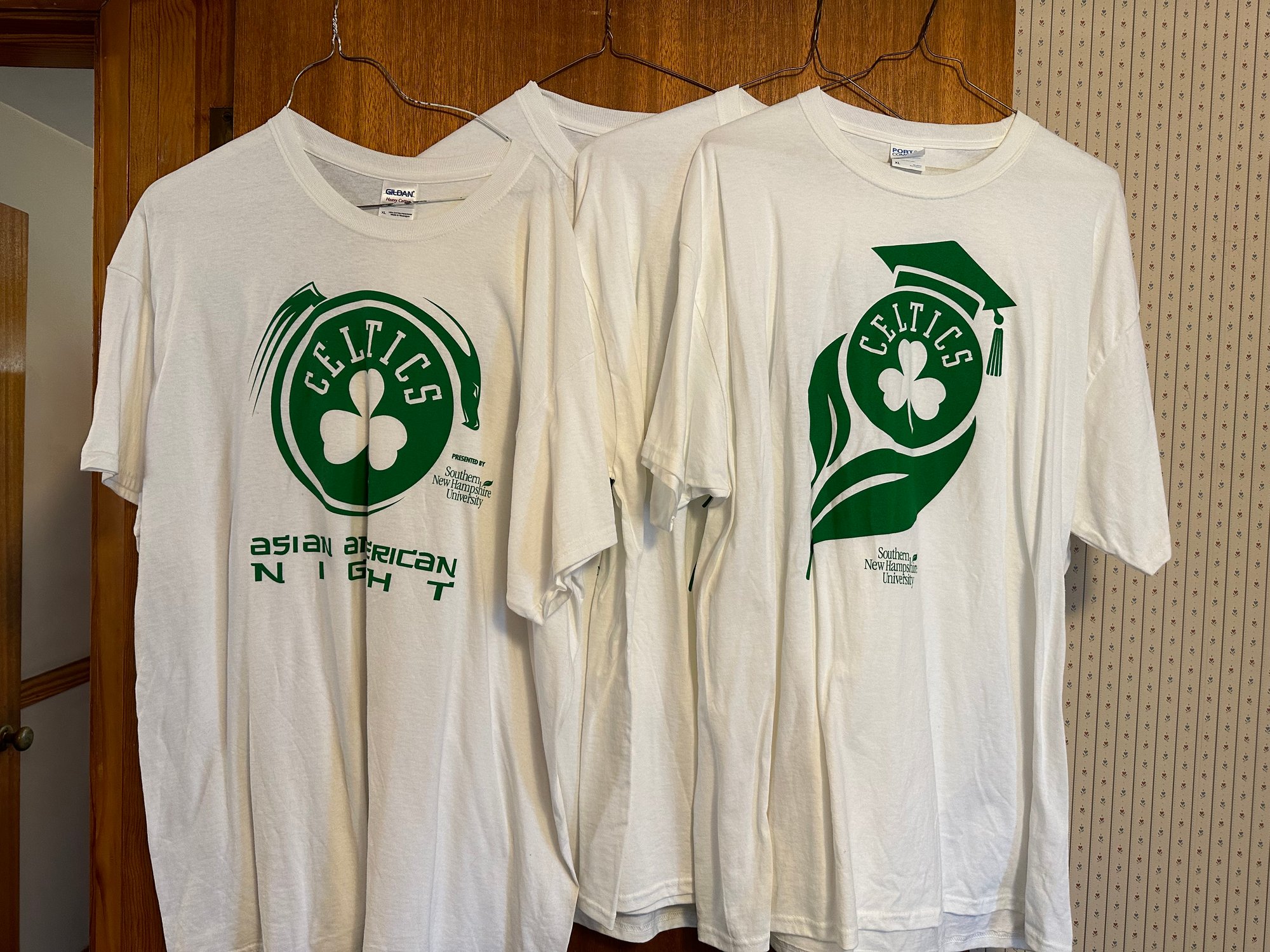 4 Boston Celtics T Shirts: 1 Asian & 3 SNHU All XL - D99
