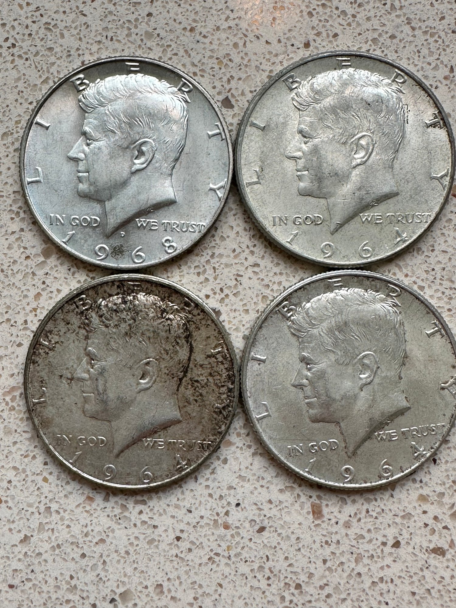 4 (Four) Kennedy Half Dollars 1964(3) 1967 - 42