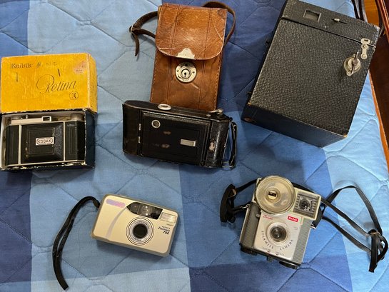 5 Vintage/ Antique Camera Collection - 3 Antique Kodaks Some Cases Plus More - Mb07