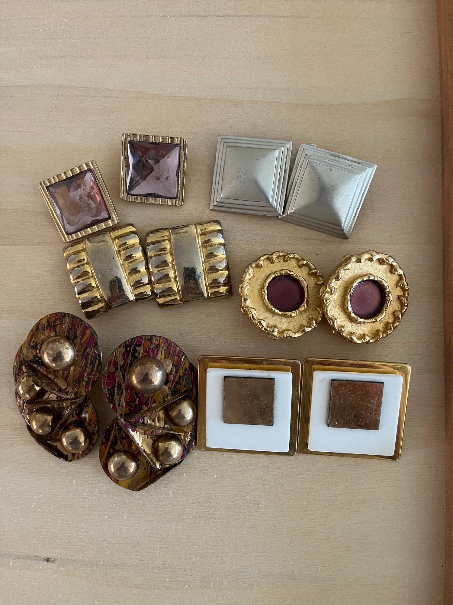 6 Pair 1980s Clip-on Earings 4 Are Square-J3