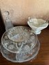 7 Piece Lot: Milk Glass, Decanter, Chip & Dip Set, Etc. D15