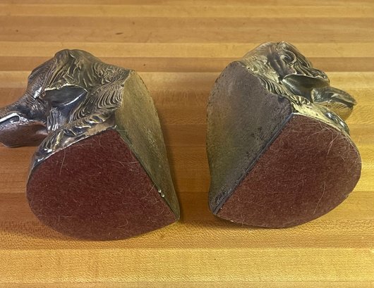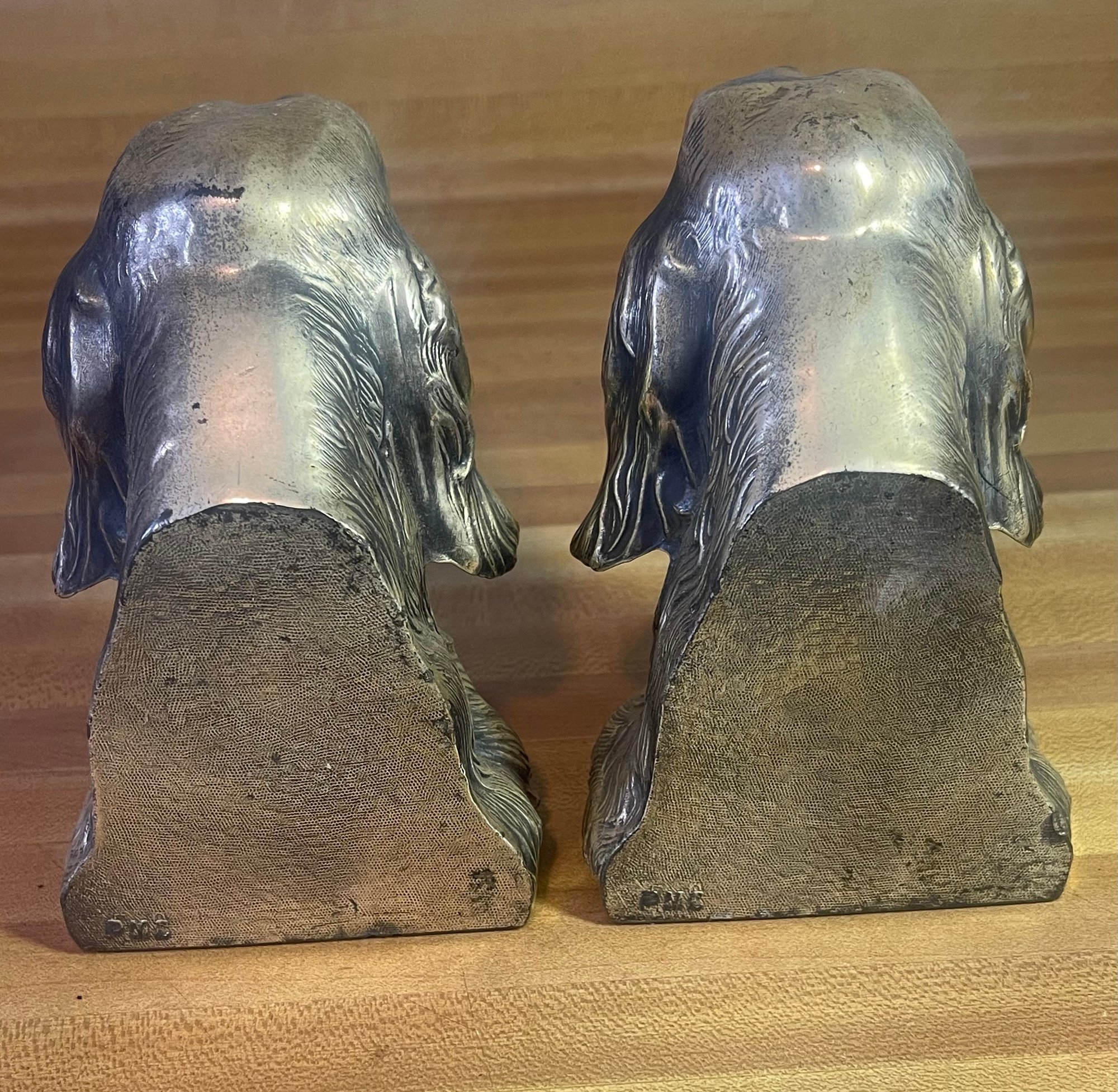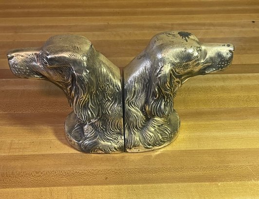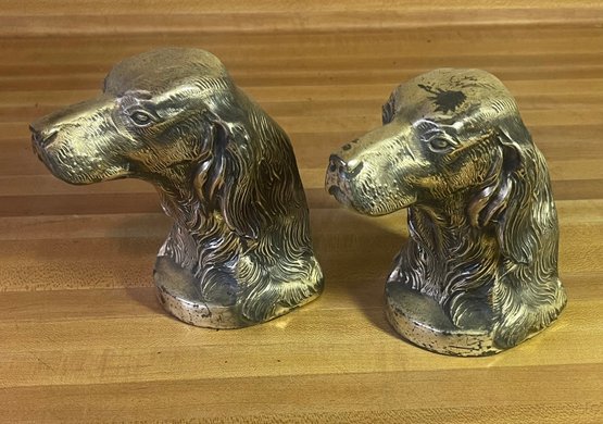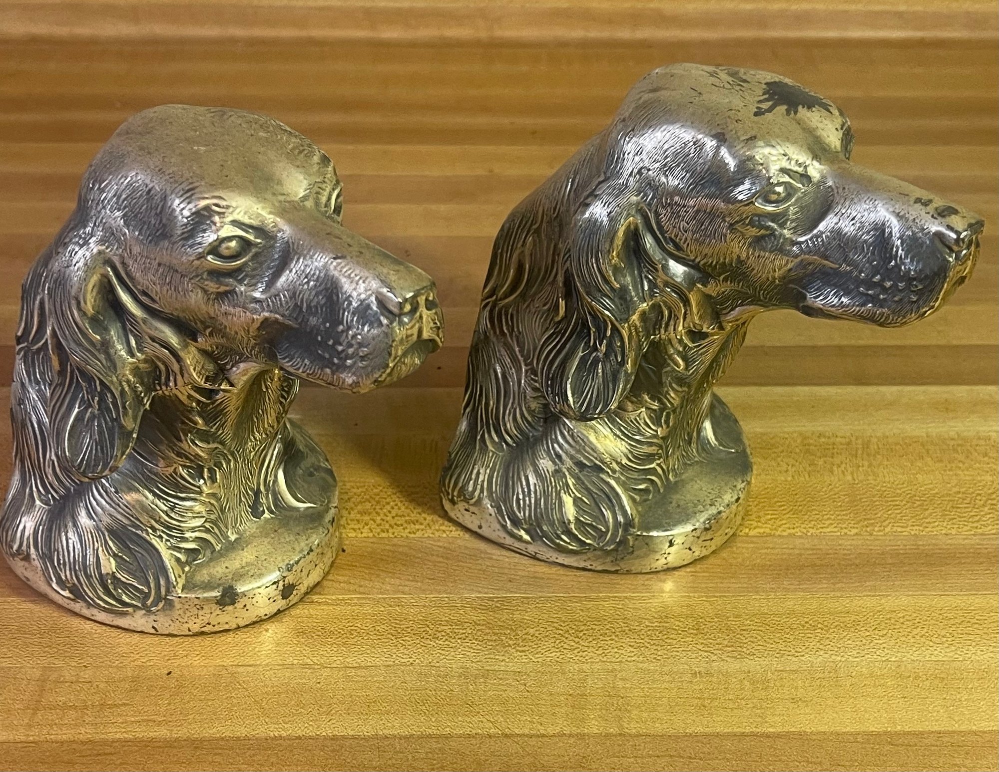 This item is a pair of vintage Irish Setter dog head bookends, likely produced by the Philadelphia Metal Co. in the 1940’s