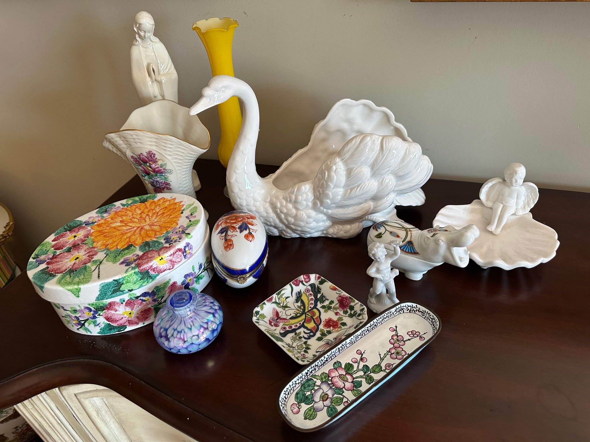 Assorted Lot Includes Fitz And Floyd Swan Goble Hummel Madonna Lenox Vase - B36