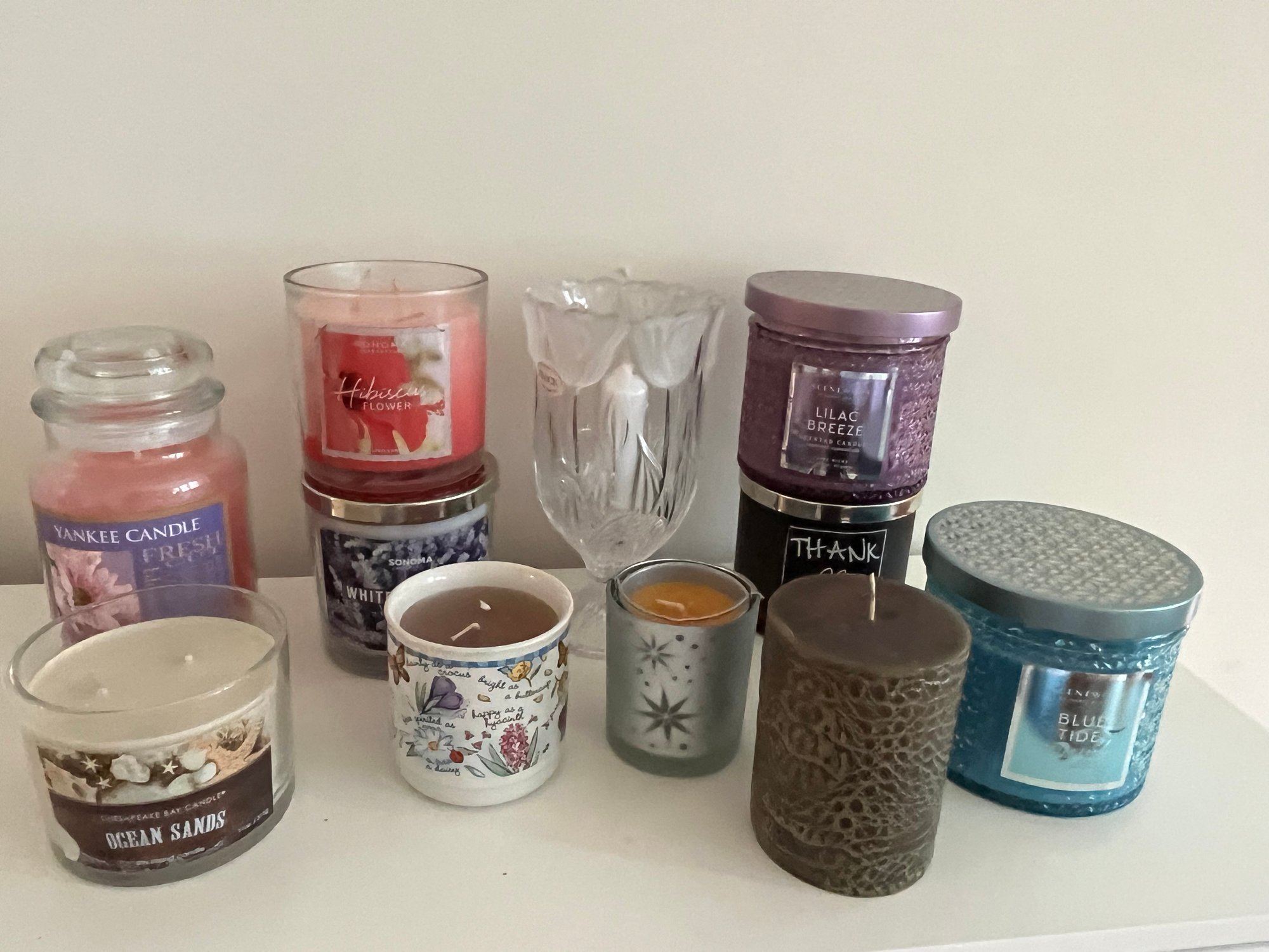 Assorted Scented And Unscented Candles Lot Of 10 Plus One Hurricane Candle Holder - C14