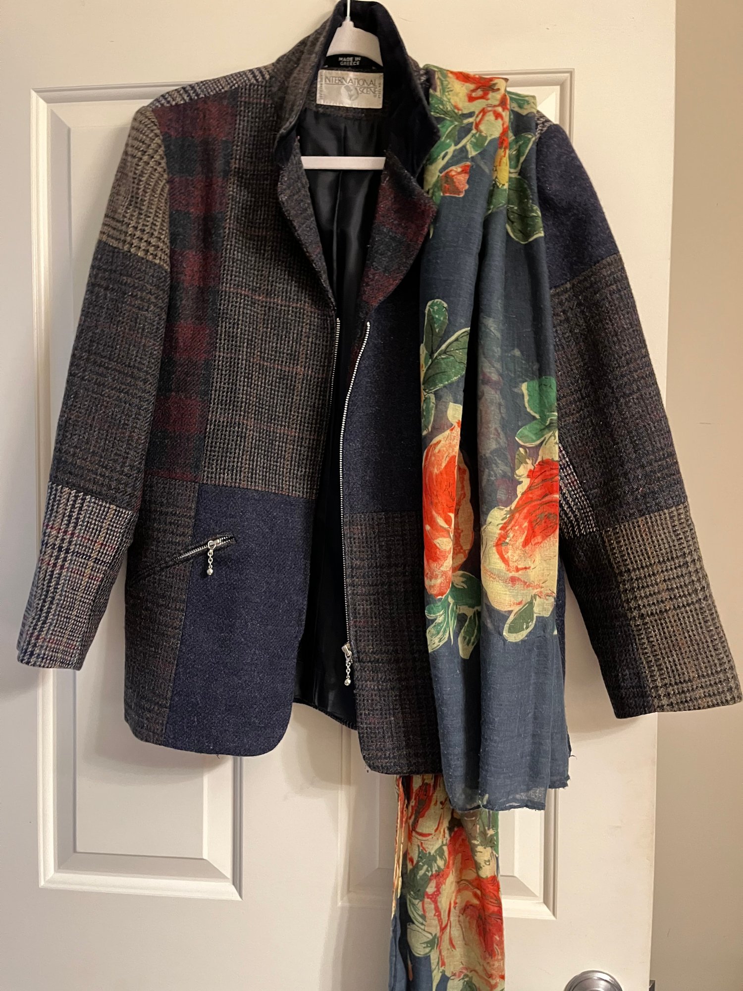 Patchwork Style Blazer With Scarf - BB14
