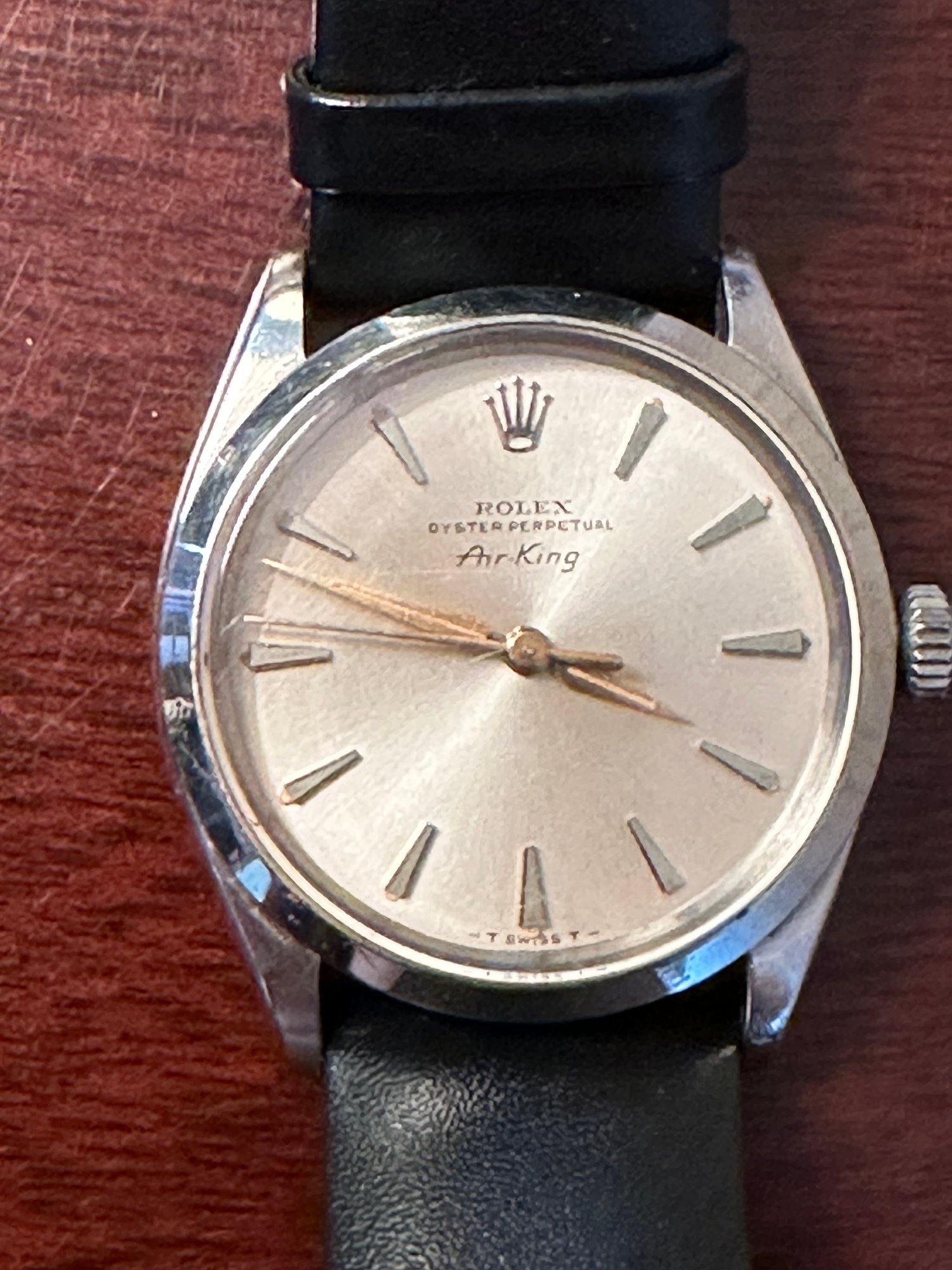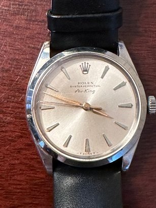Shown in a non- Rolex black leather band.