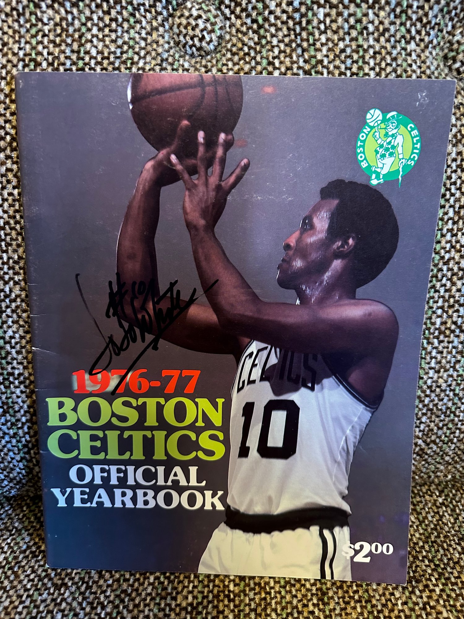 Autographed Celtics #10 Jojo White 1976-77 Boston Celtics Official Yearbook -D19