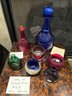 Beautiful Early American Sandwich Glass Lot Of 7 Items Includes Blue Decanter - Lv38