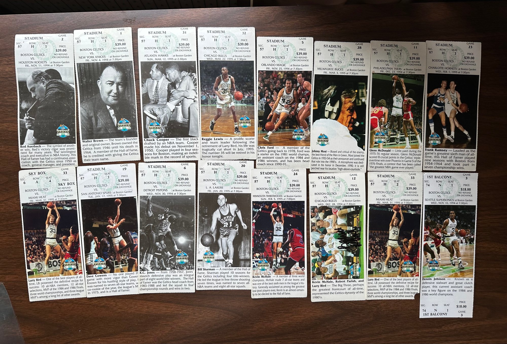 Boston Celtics 1994/1995 Game Photo 16 Tix: Bird, McCale, Parish Signed Tix, Etc - D94