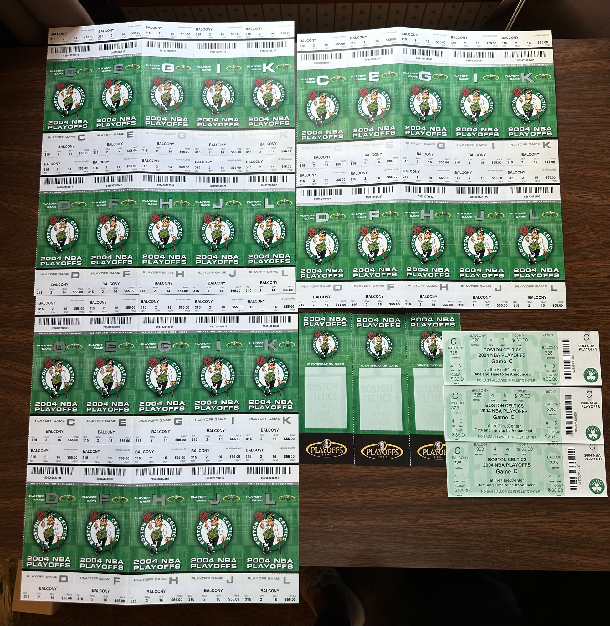 Boston Celtics 2004 NBA Playoff Ticket Sheets 3 With 3 ID Cards & 3 Tix - D84