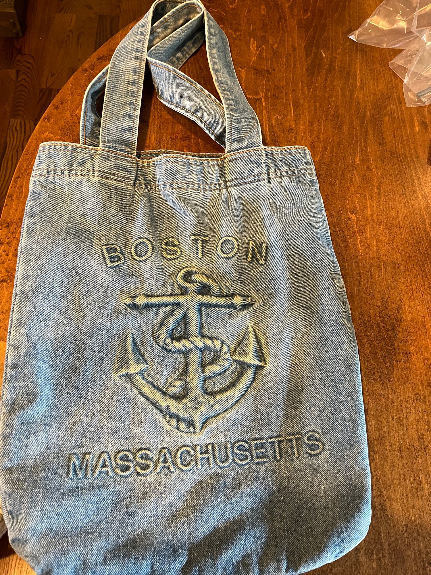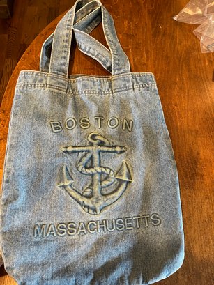 Boston Massachusetts Blue Denim Satchel - BFC5