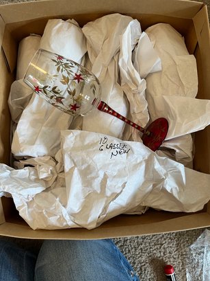Box Of 10 New Red And Gold Wine Glasses - 2D36