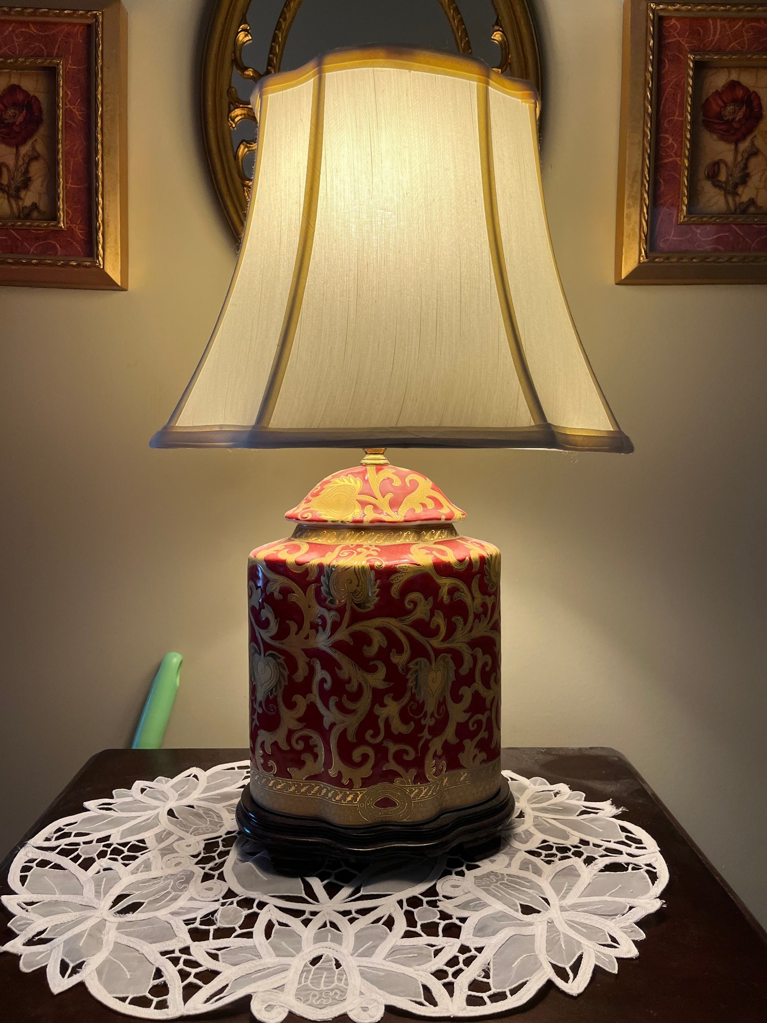 Ceramic Lamp With Wooden Base 20 Inches Tall - B1