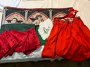 Large green table cloth and 12 napkins Damask