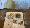 Colorful Luncheon Collection Including Yellow Depression Glass Platter Plus Flower & Bird Clear Plates- K61
