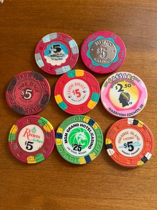 Eight Collectors Casino Chips Includes $25 MGM Las Vegas - BL67