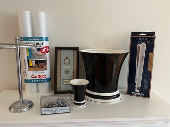 New Black And White Bath Accessories, Inspirational Frame, New Ceramic Flat Iron,shelf Liner And More - C17