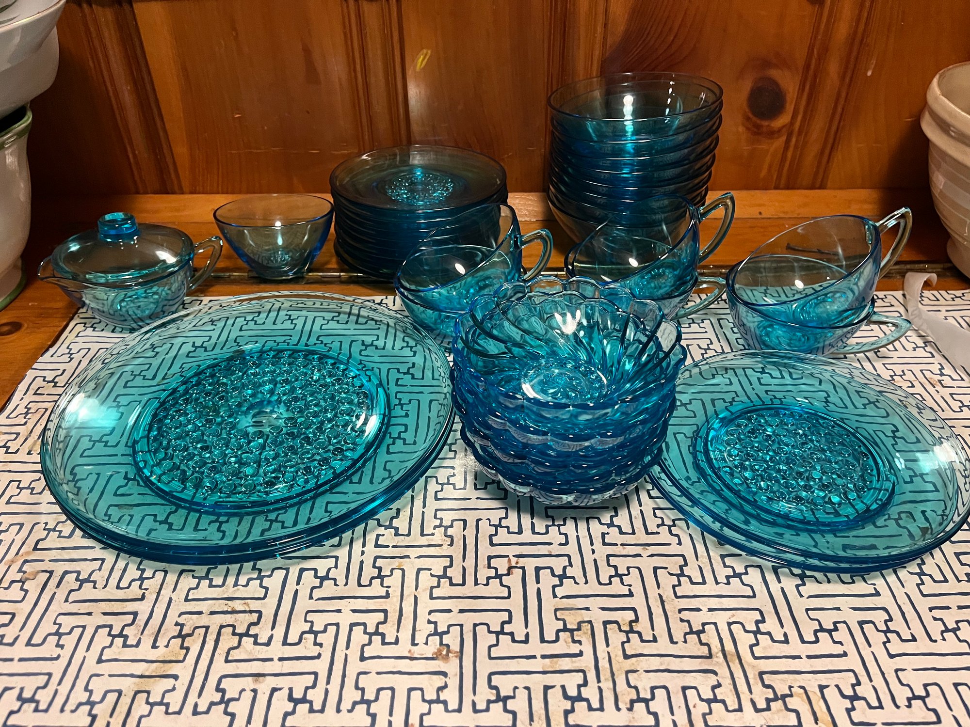 2 plates 2 salad plates 6 plain Sm bowls cream and sugar 6 swirled bowls 6 cups 8 saucers