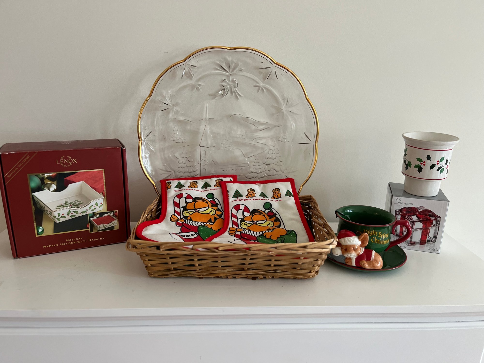 Holiday Hostess 9 Pc Lot Includes Boxed Lenox Napkin Holder And Large Platter - C10