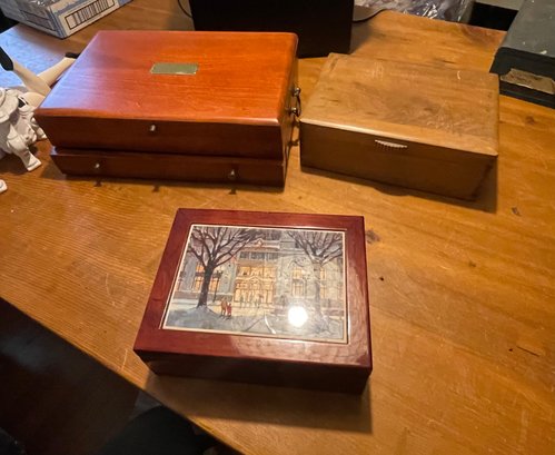 Jewelry Box And 2 Other Wooden Boxes