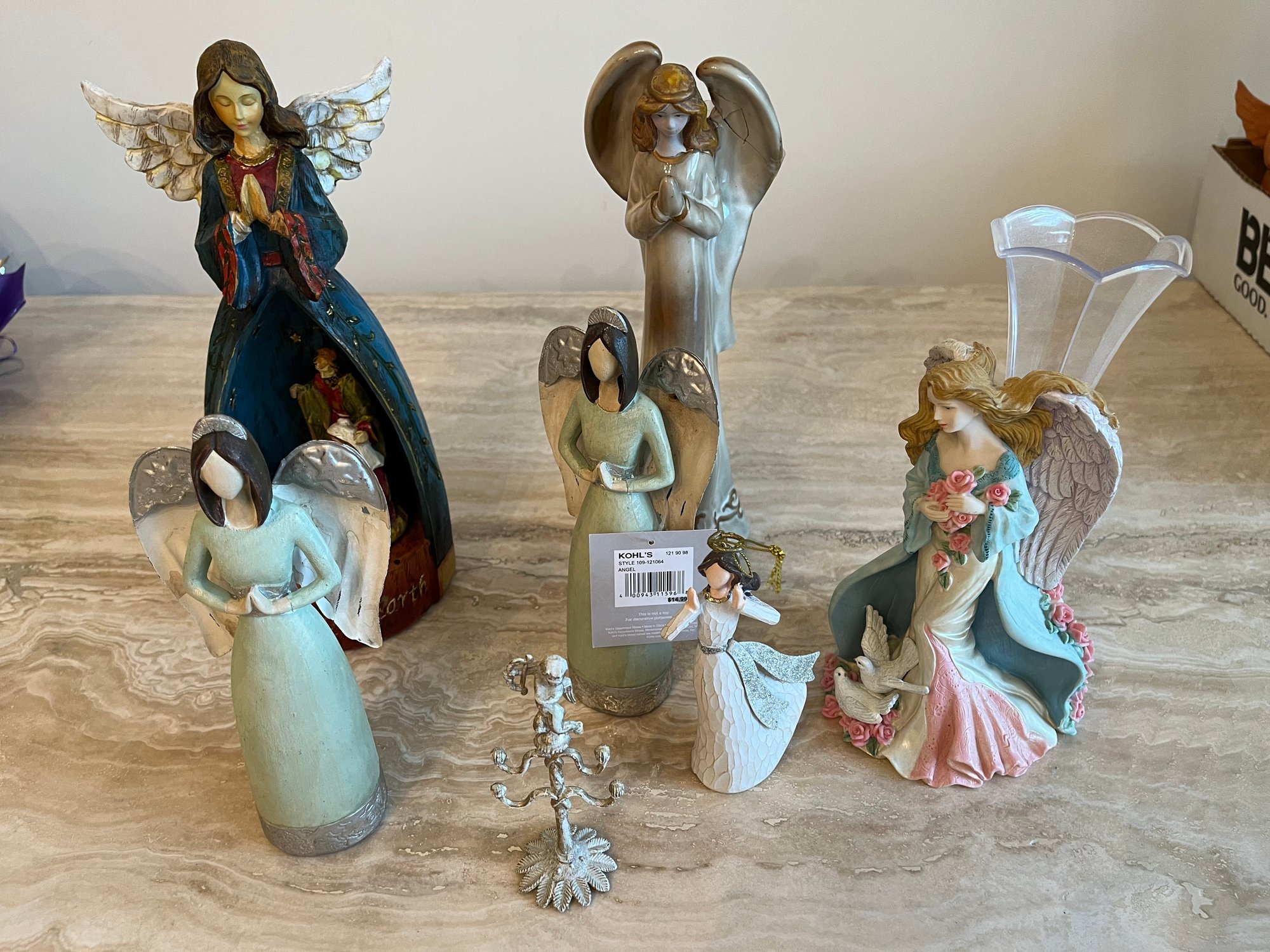 Lot Of 7 Angels - Includes Music Box Nativity Angel - D19