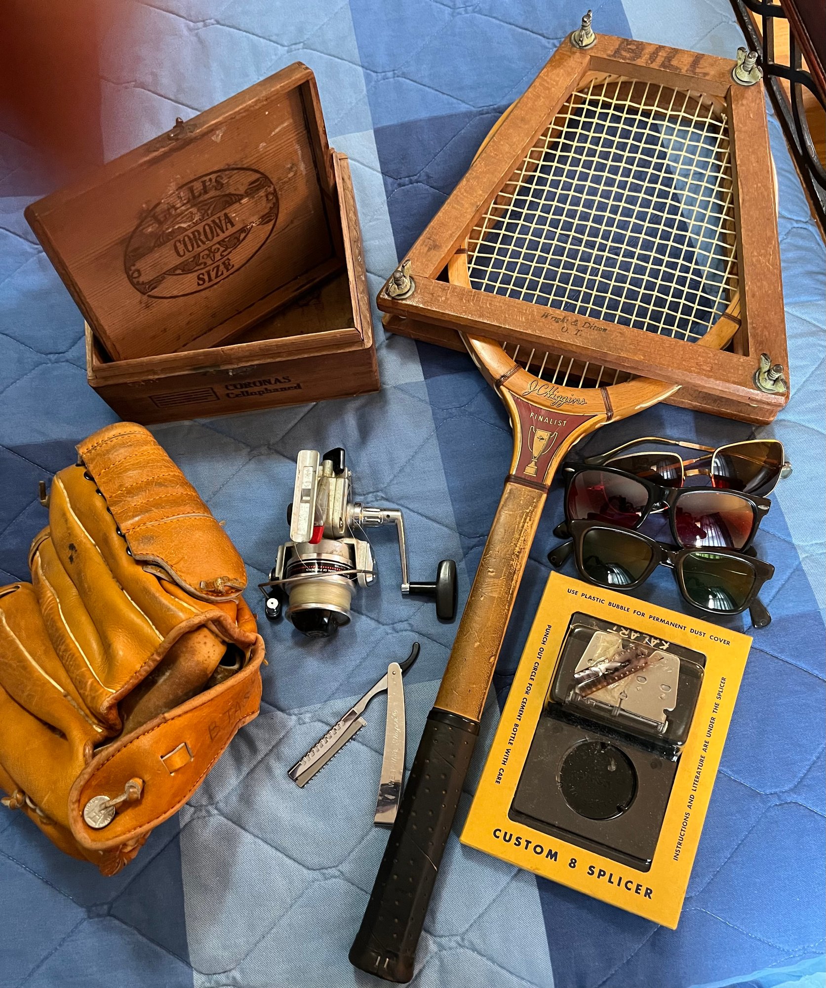 Mens 9 Piece Vintage Lot Includes Tennis Racket And Baseball Mitt - Mb12