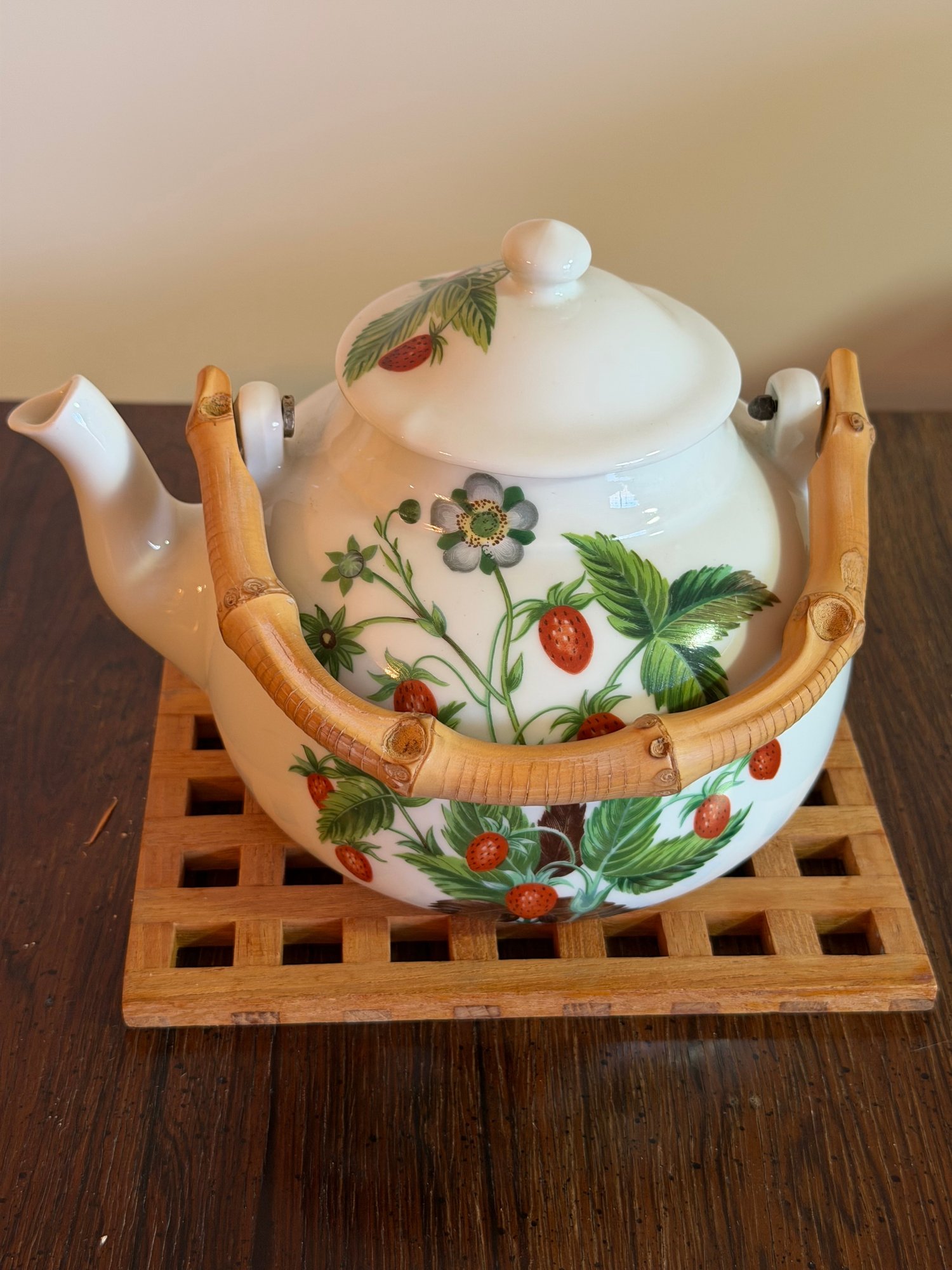 Porcelain De Paris Luminite Strawberry Tea Pot With Trivet - 16