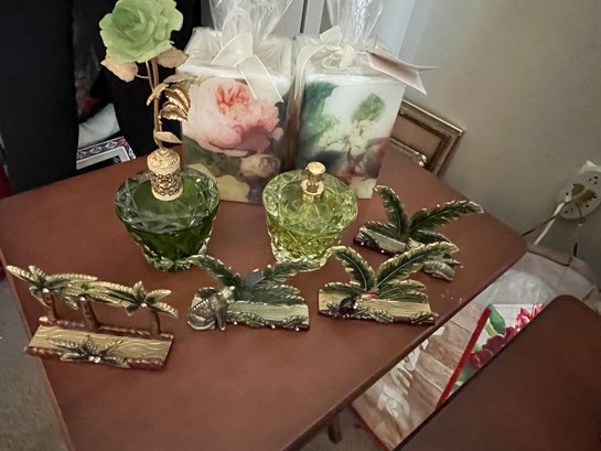 Green Crystal Perfume Decanter, Letter Holder And Candles- 2Den1