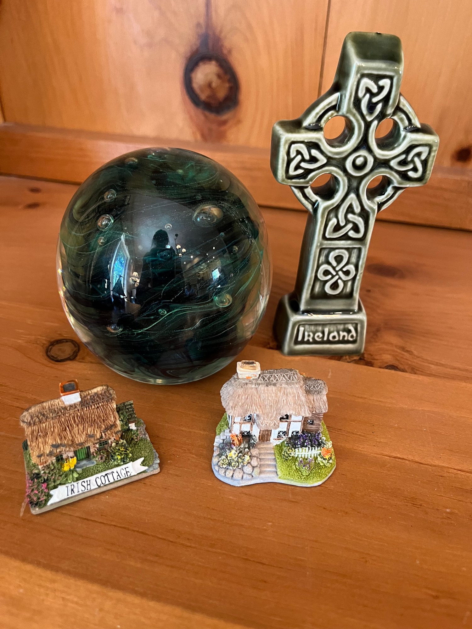 Irish Crystal Paperweight By Kerry Glass And 3 Small Figurines From Ireland - Lv24