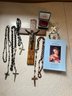 Rosary Bead Lot And Jerusalem Cross Plus Book - K40