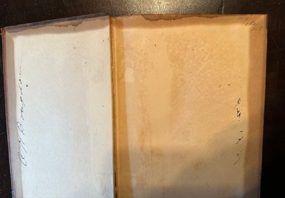 ripped bidding, stained cover pages but looks good for age