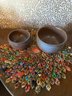 Two Handmade Pottery Bowls With Handcrafted Mat - D23