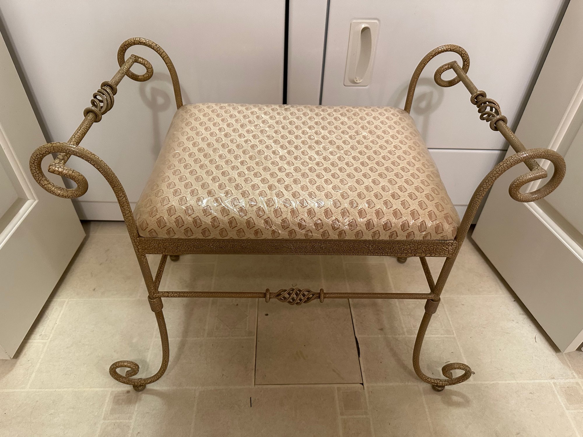 Vanity Stool With Upholstered Fabric (still Covered In Plastic)