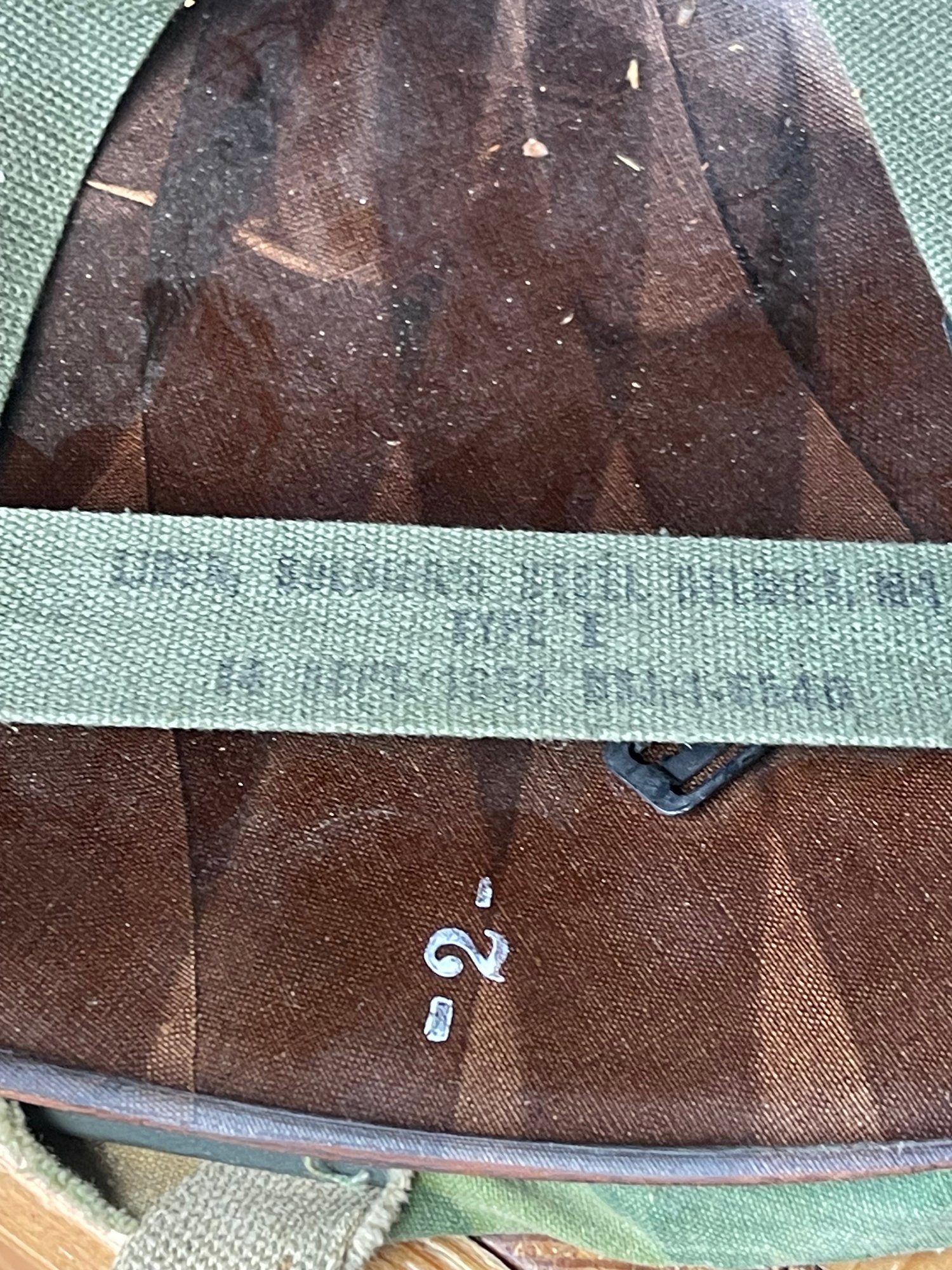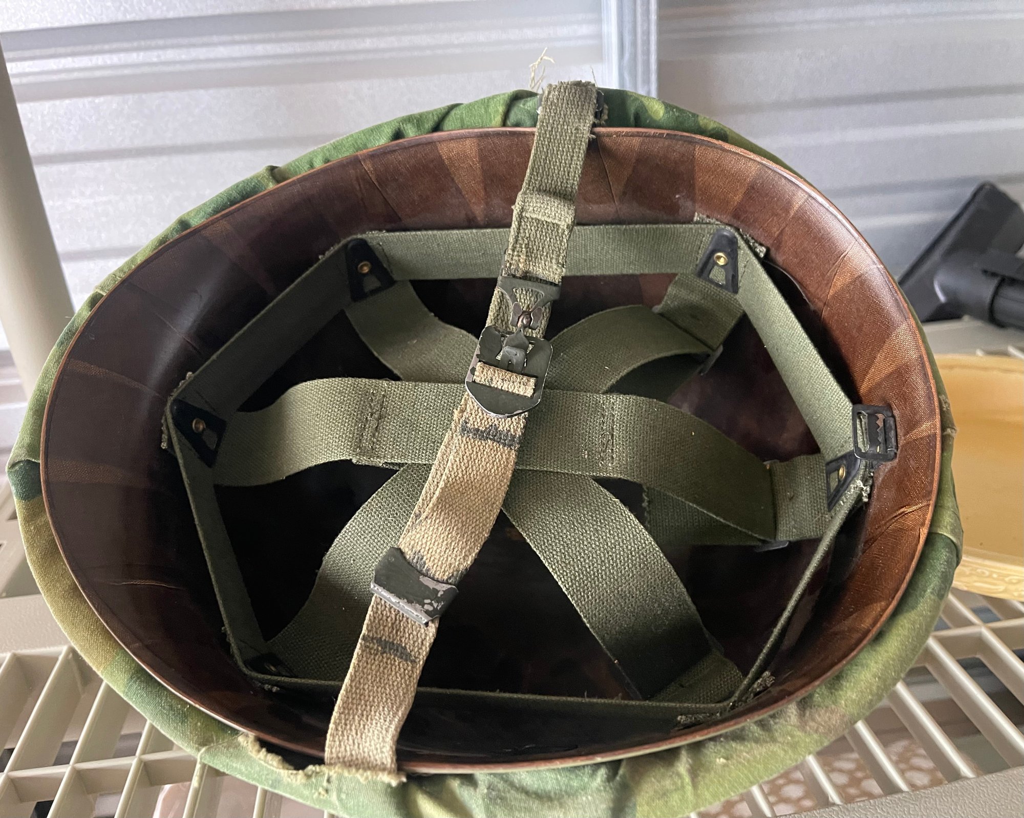 These liners were designed to fit inside the steel M-1 helmet shell and were used by U.S. forces during WWII and beyond