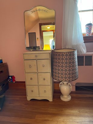 Vintage Lamp, Wall Mirror And Small Storage Chest - BR78