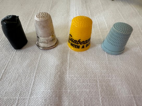 Vintage Leather Thimble, Cordoba And Sunbeam Bread Thimbles, Etc - J31
