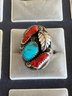 Vintage Navajo Turquoise And Coral Silver Big Boy Ring-J23