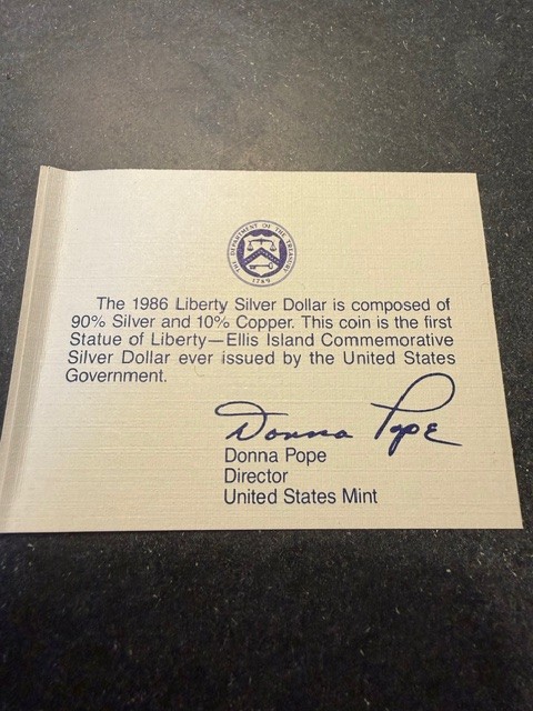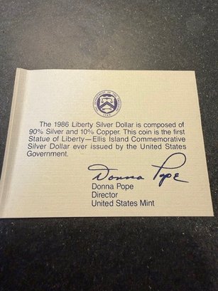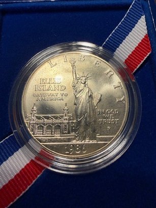 1986 Uncirculated Silver Dollar First Year Ellis Island Philadelphia Mint