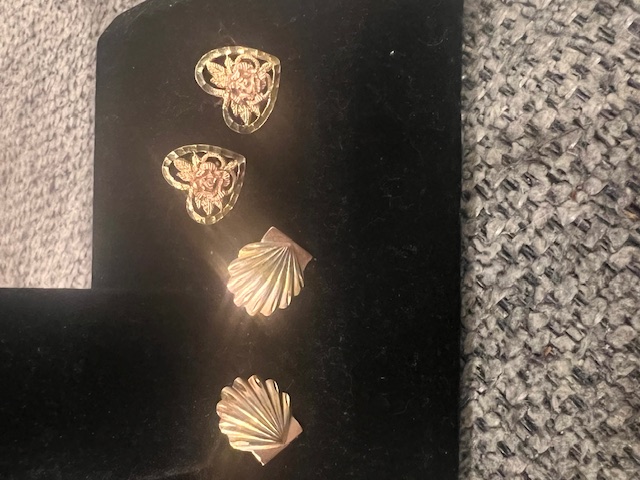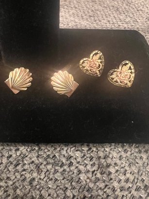 2 Pair Post Earrings One Marked 14k Beverly Hills Gold