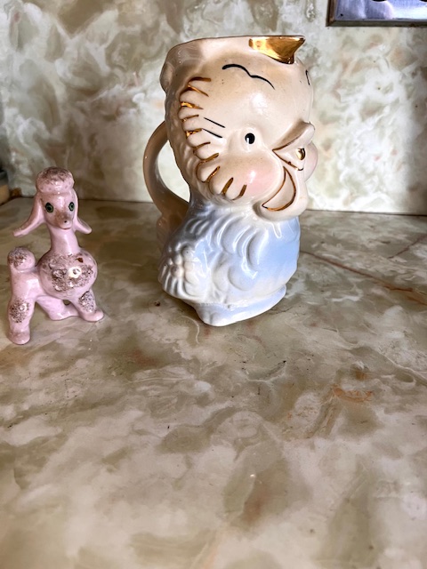 2 Porcelain Animals, Owl Creamer And Pink Poodle