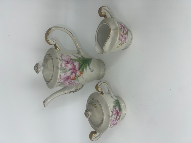 3 Piece Floral Motif Tea Set Hand Painted Made In Occupied Japan