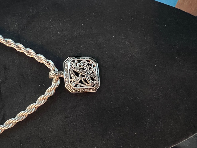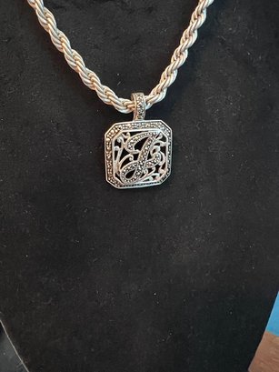 925 Silver Marcasite And Filagree J Necklace On Silver 925 Chain